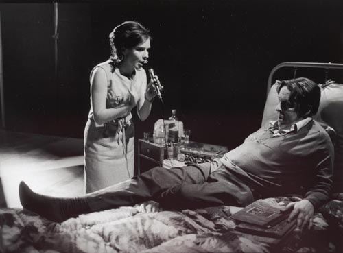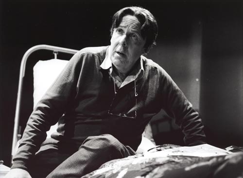 between a turtle and Oscar Wilde, beached high on his hospital bed